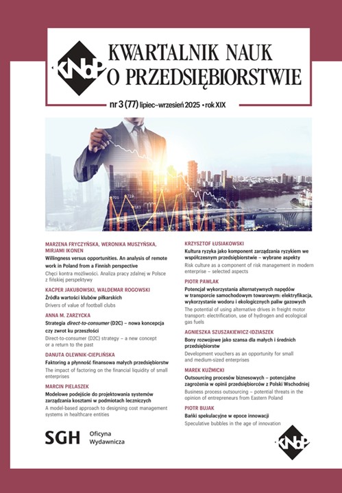 Kwartalnik Nauk o Przedsiębiorstwie- ISSN: 1896-656X - eISSN: 2719-3276 - DOI: 10.33119/KNoP
