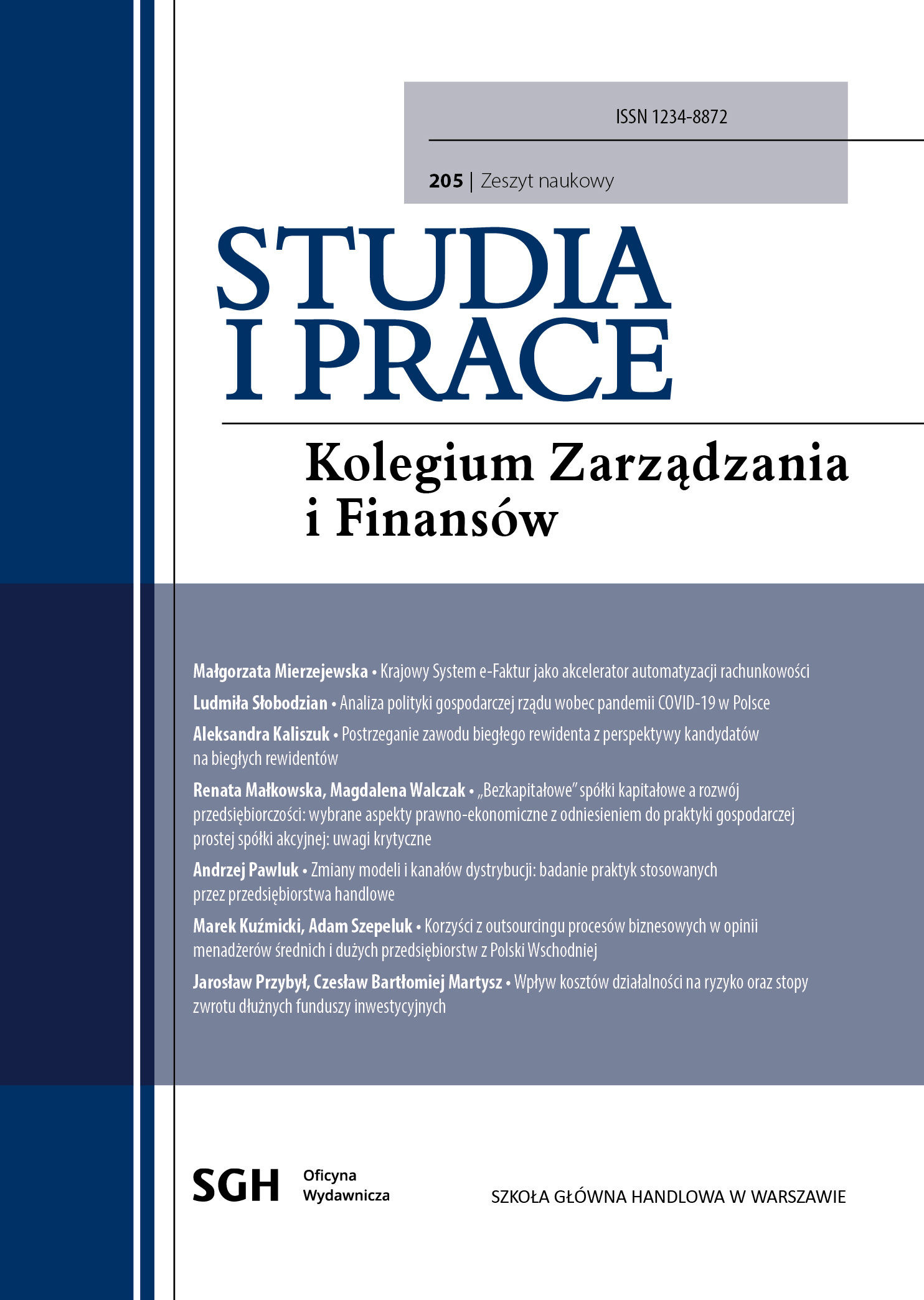 Mamy przyjemność oddać w Państwa ręce kolejny, 205. już numer Zeszytów Naukowych „Studia i Prace Kolegium Zarządzania i Finansów”. Nasze Zeszyty Naukowe stanowią forum dla wymiany myśli i wyników badań naukowych z zakresu ekonomii, finansów i zarządzania. Wydawane są przez Kolegium Zarządzania i Finansów Szkoły Głównej Handlowej w Warszawie i mają na celu promowanie wiedzy oraz rozwijanie debaty akademickiej w dziedzinach kluczowych dla funkcjonowania nowoczesnej gospodarki.